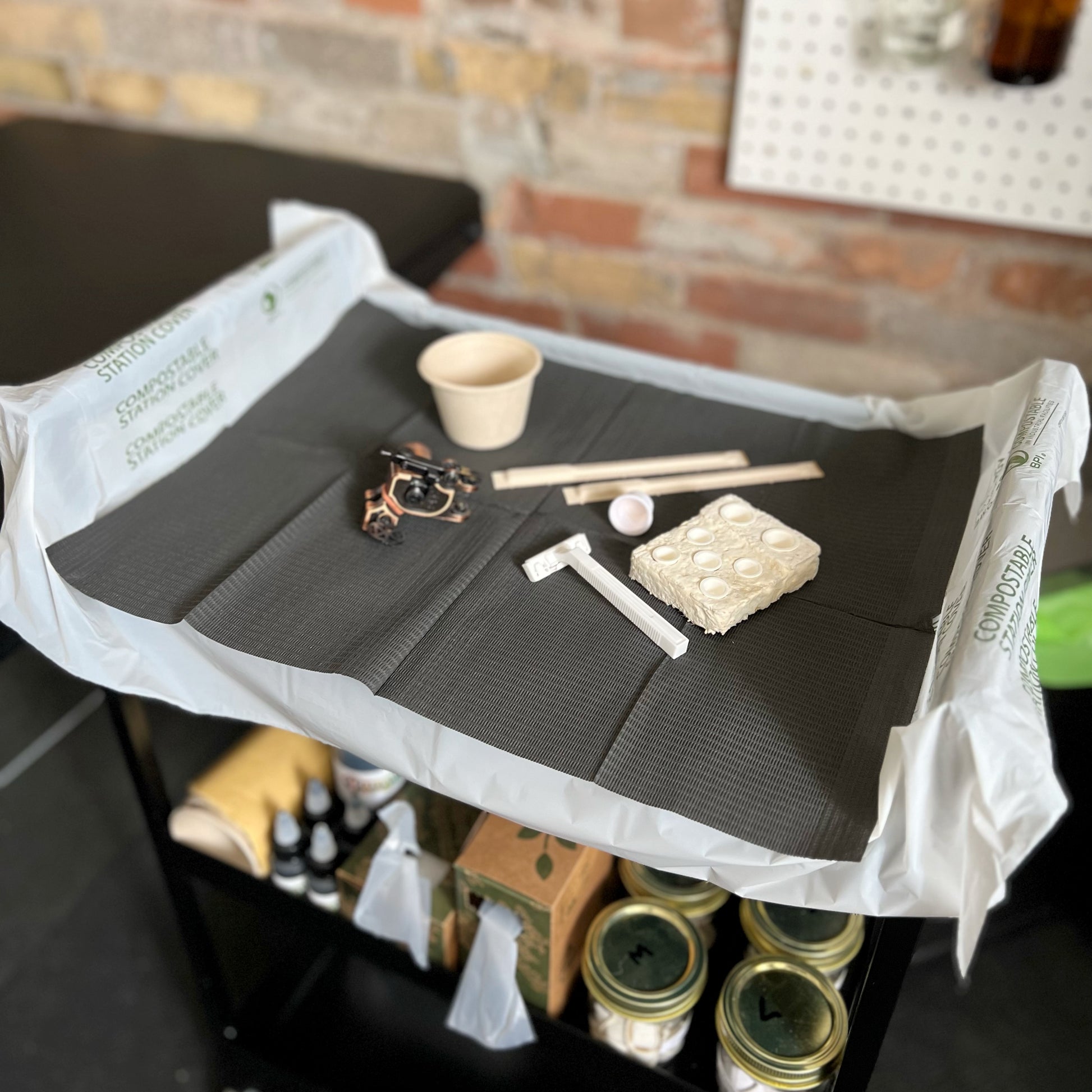 Eco-responsible dental bibs that absorb liquid while protecting your surface from bacteria and viruses! These are made completely from plant based materials; plant fibre and PLA. Even the bag they come in is made of PLA and fully compostable.