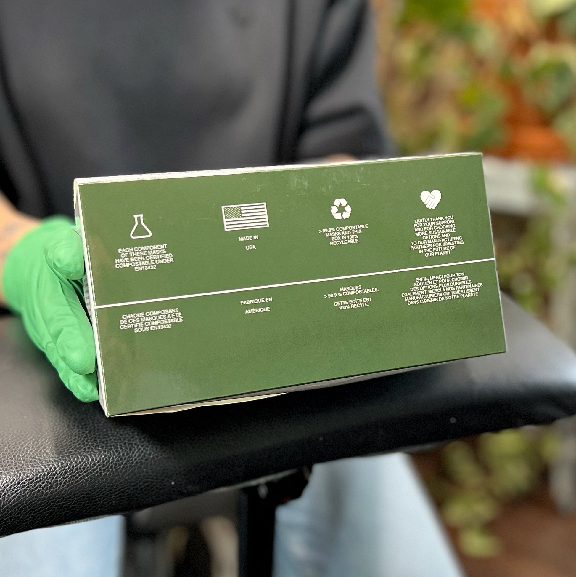 ¡La primera mascarilla compostable del mundo con protección de grado médico/quirúrgico fabricada en Estados Unidos! Apoyar la fabricación local reduce drásticamente la cantidad de emisiones de carbono generadas durante el envío. En lugar de viajar miles de kilómetros para llegar a ti, estas mascarillas viajarán una fracción de ese tiempo.