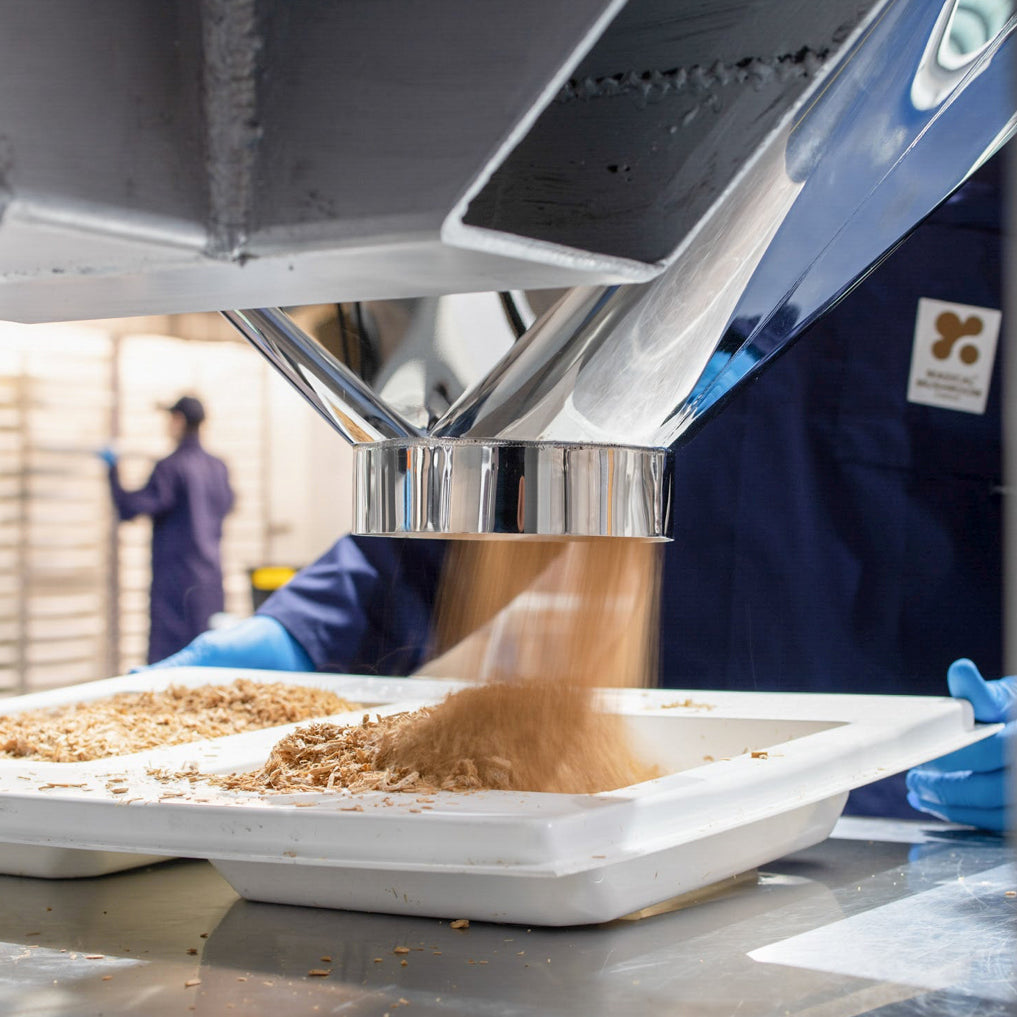 Our manufacturing partner The Magical Mushroom Company ® is working on a recycling program, allowing them to collect this material after use and then supplying it to anaerobic digestion plants for the generation of clean energy!